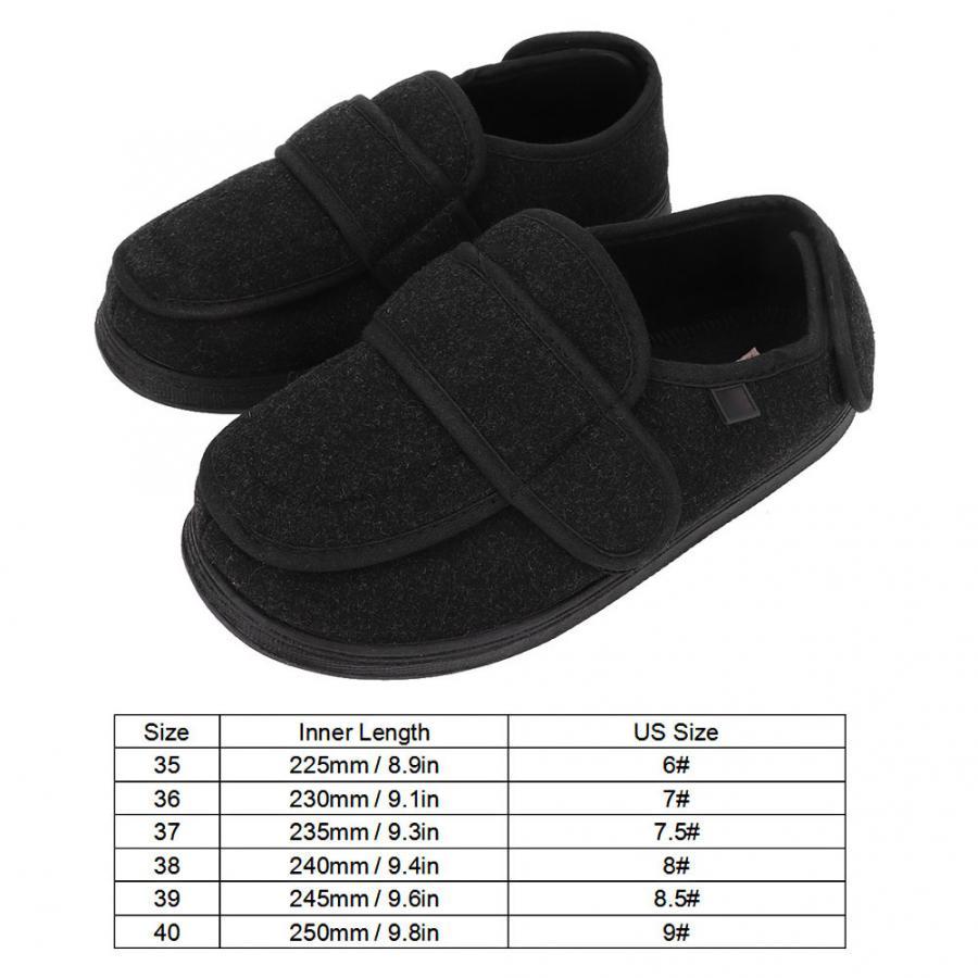 - INDOOR & OUTDOOR - The non-slip soles are strong and provide some support for walking. They are solid and nice all around. Shoes with rubber soles that grip give protection and security in any circumstance. These slippers for the elderly are not only adjustable, but they also do not slip, which is an incredibly vital feature. Any terrain can be traversed with ease because to the sole's unique shape, which offers optimum traction grip. There is also the possibility of using these orthopedic velcro diabetic slippers as shoes for feet that are swollen.
