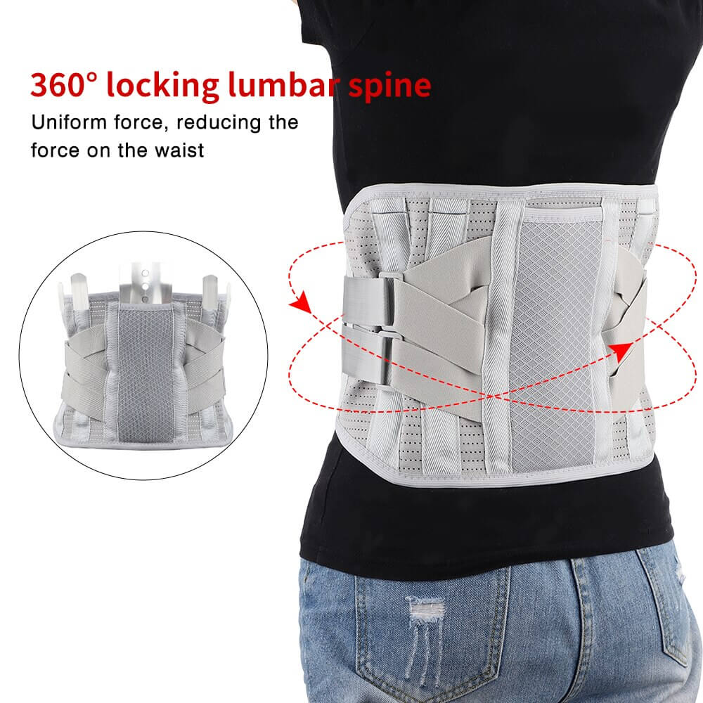 Firm Support: Each brace comes with insert-able steel spine supports for maximum restriction of spine movement. For more movement, pull out the plates and the double belt closure provides more moderate stabilizing support. The 8 support straps weave around your waist and lumbar for additional lower back pain relief.