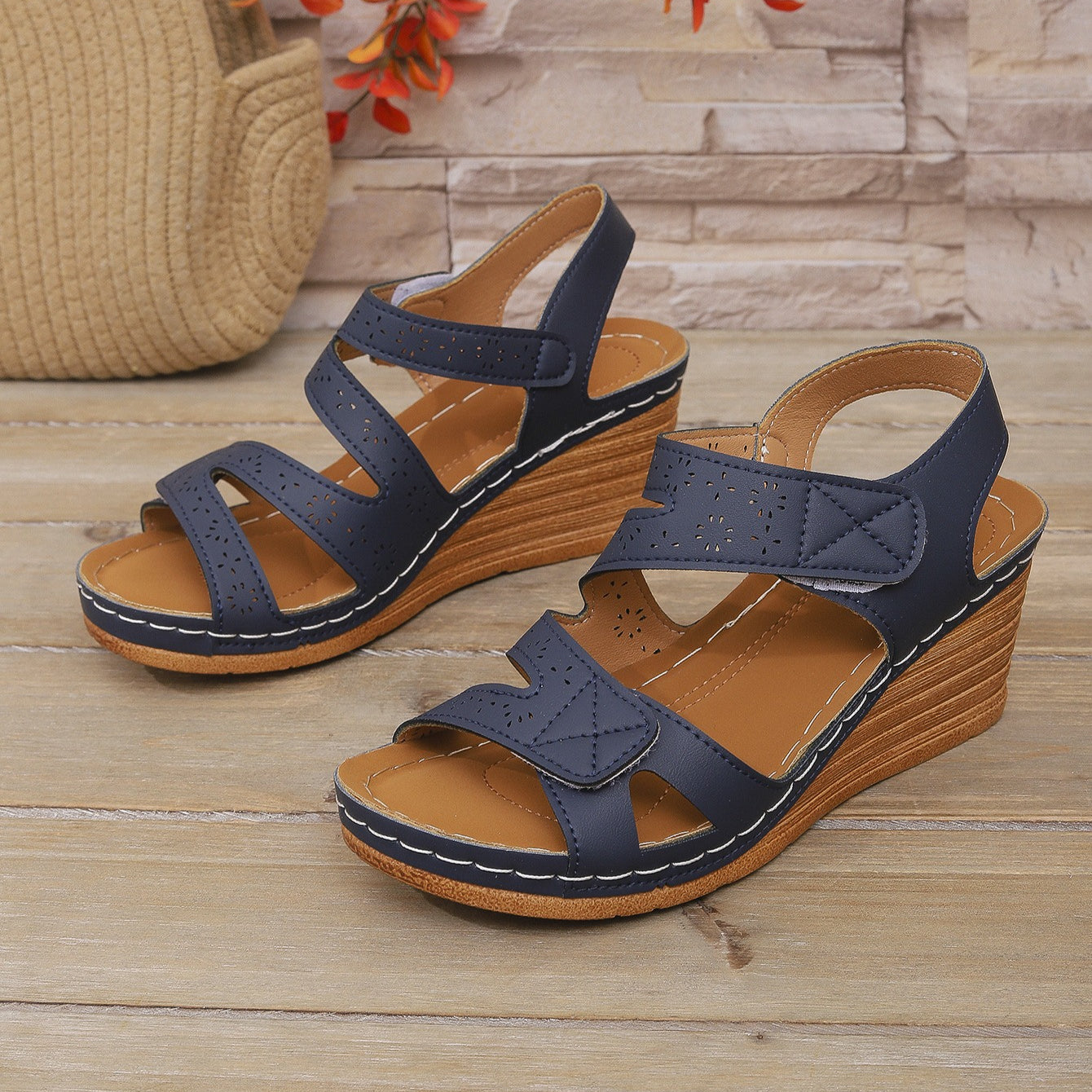 Step into summer with these stylish platform sandals featuring an adjustable criss-cross strap design. The hook-and-loop closure lets you customize the fit for wider feet or swollen ankles, while the cushioned wedge provides all-day arch support.